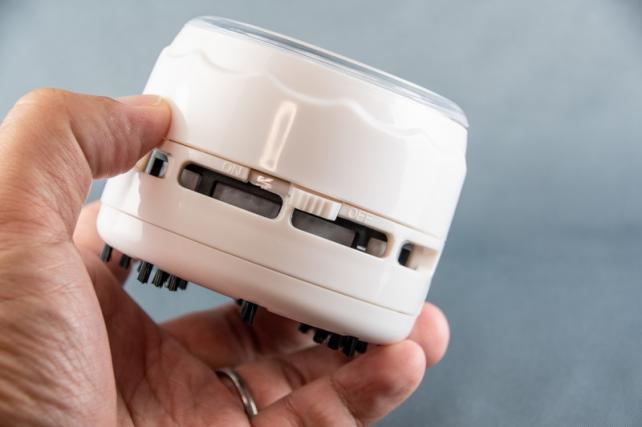 側面にスライド式のスイッチがあります。ここで電源をONにすれば内部のモーターが回転し、吸引力が生まれるという非常にシンプルな構造です。
