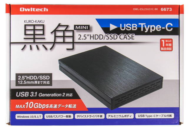 USB 3.1 Gen2 Type-Cコネクタで購入を決めたのですが、Owltechの黒角シリーズは、これまでも色々購入してきて、信頼性もありました。