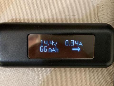 14.5Vで0.18A~0.34Aの間に収まっていました。およそ5Wの供給になります。
