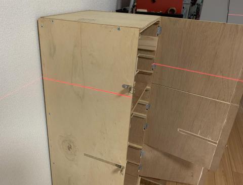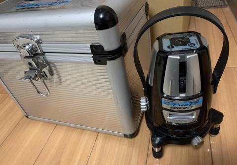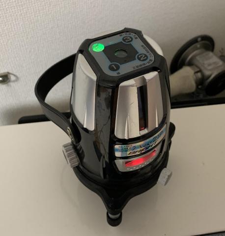 この機種は、縦、横の1ラインで、天井と地面に点でレーザー点が付きます