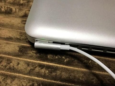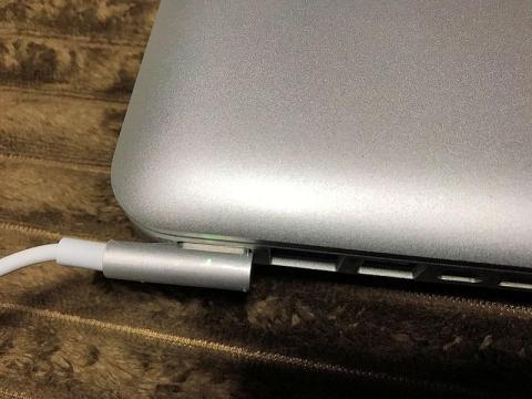 magsafeのACアダプターは、どちらの方向に挿しても問題なく動作することが売り文句となっていたのですが、こちらの互換品も純正品同様に装着した向きにかかわらず、正常に給電されていることが分かります。