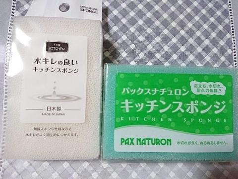 亀の子スポンジはストックがないのでパックスナチュロンのスポンジと並べてみると、