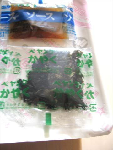 中に入っているソース と ”かやく” ワカメと昆布が多いです