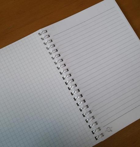リングノートは、簡単にページを破ってなかったことにできるところ、完全に二つ折りにして使えるところが利点。