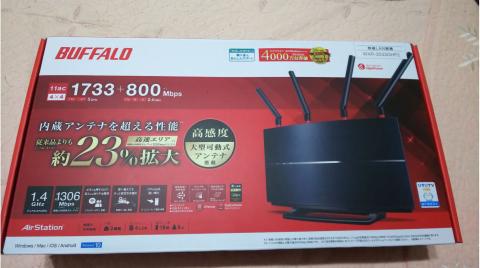 以前からバッファローのWZR-1750DHPと言うモデルのWiFiルーターを使っていたのですが、最近頻繁に通信が途絶えたりして調子が悪い。WZR-1750DHPはIEEE802.11acまだドラフト規格だったころに買った物なので、かれこれ6年ぐらいは使っているのでそろそろ寿命かと思い買い替えることにした。ずっとバッファローのルーターを使っているので、今回もバッファローの物にしようと思ったのだが、新型のWTR-M2133HPのお皿みたいな形にドン引きしてさらにアンテナも2x2だったのでひとつ前の型のWXR-2533DHP2 にしました。