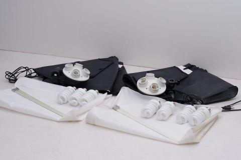 人物や大型被写体も撮れるデジカメ蛍光灯ライトです。 40w×4つで1灯あたり160wのライトが2セットです。 ※1灯は蛍光管が3つしかありません そこそこ使用感はありますが、問題なく点灯致します。 こちらのライト用のスタンドもありますが、 状態が良く無いので出品からは外しました。 ※もしご入り用であればお伝え下さい このキットの組み立て動画はYouTubeにあります