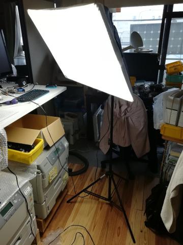 LEDバーライト式、LEDパネル式の照明器具も候補にありました。今回入手したライトは、ソフトな素材でできてるだけに、光源背後から光を集めるリフレクターと光を分残させる前面のディフューザーが明るいけど柔らかい光を出してくれるのではないかと期待しています。LEDが直接被写体に向いている光源だと、たしかに光量は確保できるのですが、乳白色のスクリーンを挟むとか、間接投光にしないと不自然な光になったりして、ちょっと面倒です。