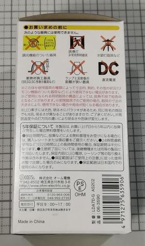 オーム電機製品には、他にも LDA7D-G で始まる全光束が同じ製品があって、他所で500~900円で売られていたりします。推測ですが、なんらか契約があってオーム電機がカインズ宛の特値設定のために「LDA7D-G AS2C2」という型番を設定したのかもしれません。