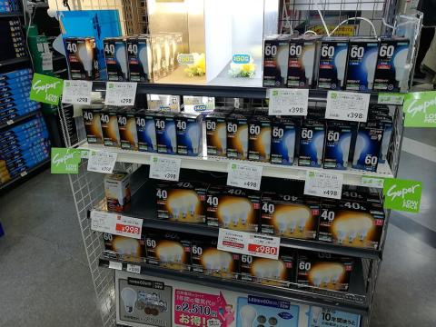 ダイソーの400円LED電球より少し長いです。(左:カインズ、右:ダイソー)