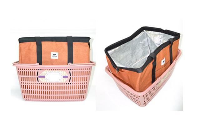 ソフトクーラーボックスをレジかごサイズに合わして、使い勝手を考慮して作られたエコバッグという感じです。