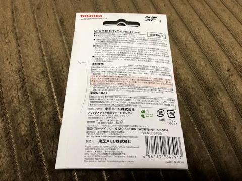 今回は64GBで1,000円という価格ですのでNFCを無視して格安メモリーカードとして使うつもりでいますが、どうにも企画意図が見えてこない製品といえます。