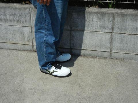 このまま街を歩いても違和感はゼロ、しかもミズノのラインがはっきりと入っていますから普通にスニーカーです。