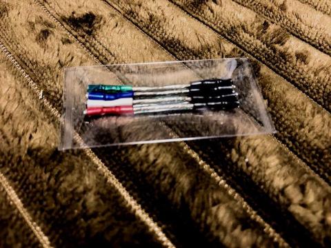 ヘッドシェルとカートリッジの間で最も音質に大きく影響する要素は、その2つの間を接続するリード線ですので、まずはリード線を何か別のものにしてみようと考えました。そこで毎度おなじみのオーディオ店に行ってみたところ、事実上唯一となるリード線の選択肢がこの製品でしたので、取り敢えずこれを入手してみました。Ortofon(オルトフォン)製のLW-7Nです。