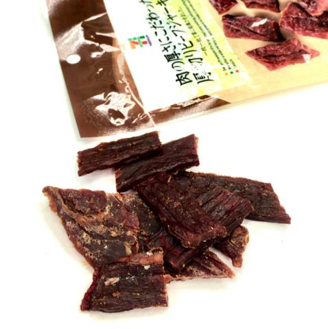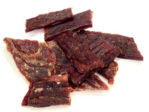 「ビーフジャーキー」は、牛肉の赤身の部分を調味液に漬けてから乾燥させ燻煙したもの。
