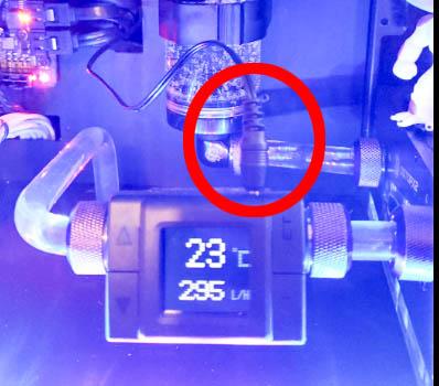 G1/4の穴の中に水車があり、それを回すことで流量を計っている。