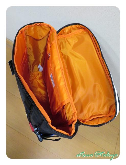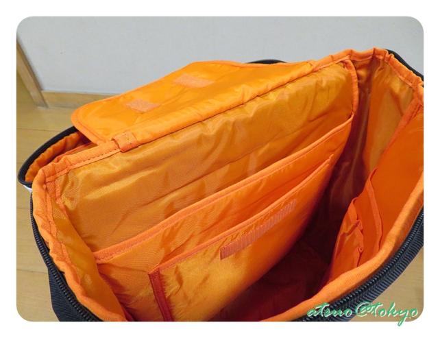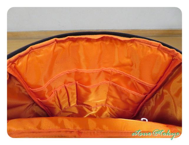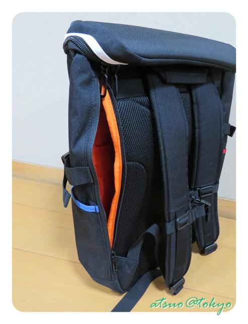 背宛て側にもジッパーが付いており、上部の蓋を閉めたまま中のモノを取り出す事が出来ます。