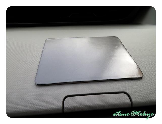 ダッシュボード等に置く側の面は粘着層でしっかり貼り付き、スマホ等を置く面は滑り難い 2層構造になっています。