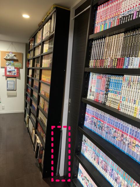 下の方は、本棚と壁の間に6cmほどの隙間ができてます。