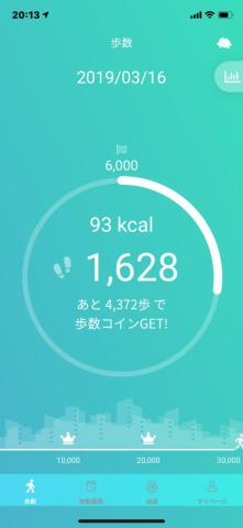 毎日歩いて、6,000歩を達成すると、歩数コインをGETできます。