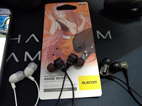 エレコム伝統の糞みたいな光沢塗料のプラ製カナルイヤフォン ANIME MUSIC。