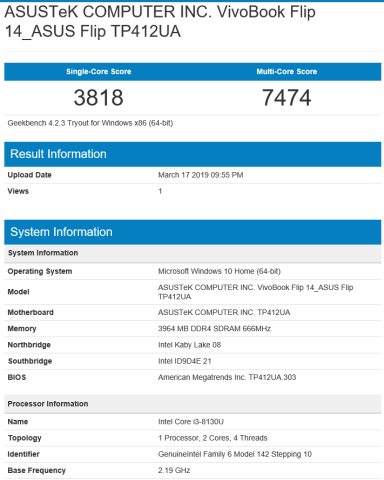 ZenBookFlipS UX370UA:シングル:3848、マルチ:10568