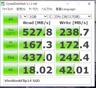 Core i5 8250U搭載のZenBookFlipSに近い値が出て大健闘。
