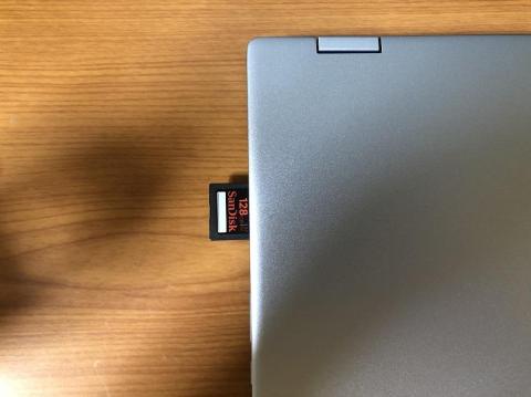 このPCにはSDカードリーダがついていますが、かなりはみ出します。