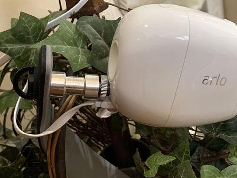ステンレスとシリコン製で、屋内外で使用できるArloクアッドポッドは、Arloカメラに最適な汎用マウントです。