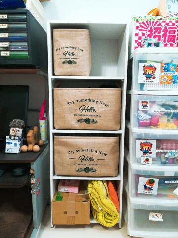 うちでは、同じくニトリの麻のボックスと組み合わせて、家族の着替えとかを入れる棚に使う予定。