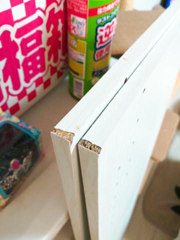 棚板側にガイド穴作るだけでいいのに、なぜここだけなかったのか、疑問です。