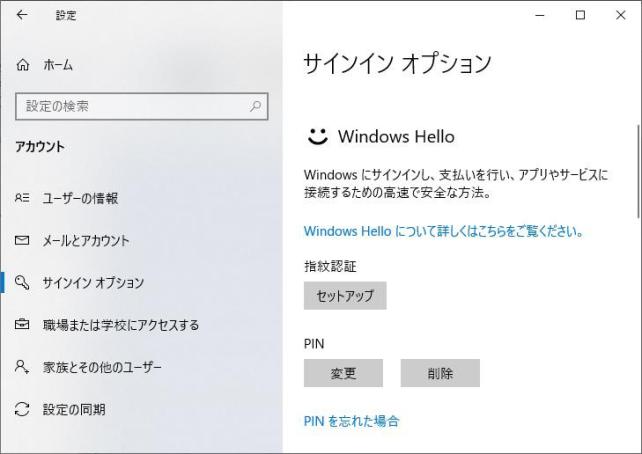 なお生体認証を行うには予め”PIN”の設定を行っておかなくてはなりません(上図は設定済みの状態)。