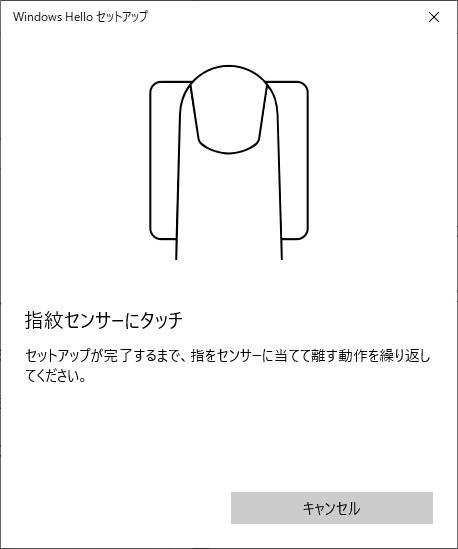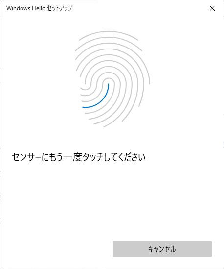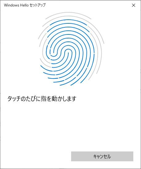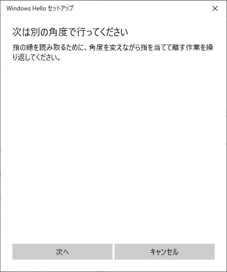 [次へ]をクリックし、指紋センサーに指先や指の側面などを角度を変えながらタッチを繰り返します。