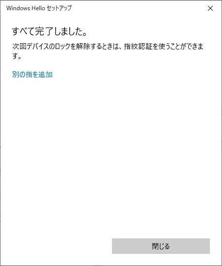 別の指も追加したい場合には、[別の指を追加]をクリックし同じ操作を繰り返す事で登録できます。