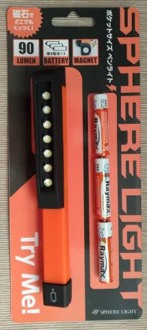 いかにもOEM製品ですよーって言っているような形で、フックのところにSPHERE LIGHTの文字がありました。しかしですよ、コレ気が利いていてフックのところがマグネットになってました。
