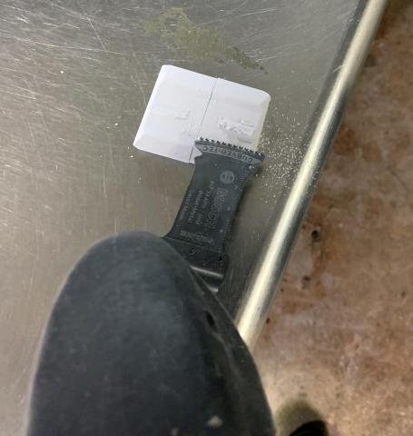 ボードとかを取付けるマグネットの土台(壊れている物)の土台部分だけを利用しますので、出っ張りをマキタのマルチツールを使って平らに加工します