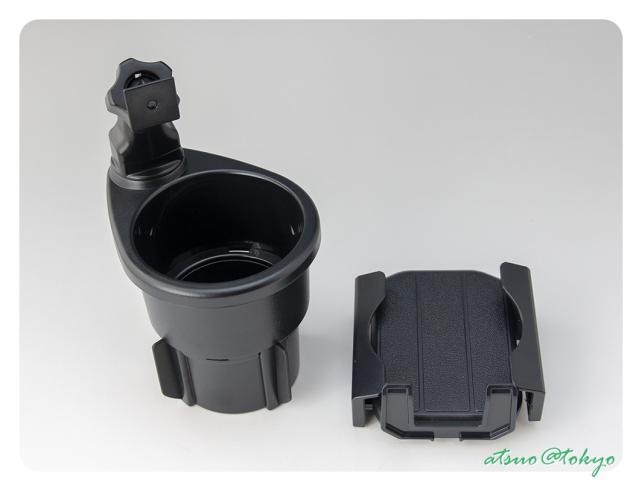 ドリンクホルダーに入れるだけではガタツキが心配でしたが、下部にある 4つのフィン(ラバー製)がホルダー内側に押し付けられ固定されるようになっています。