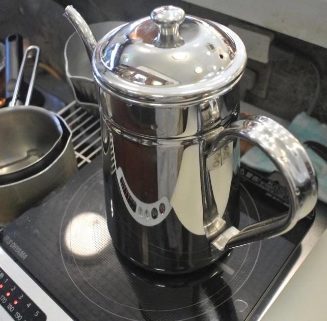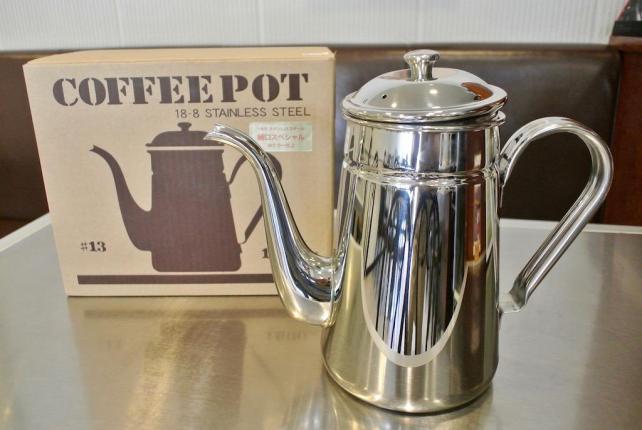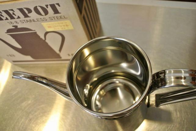 考えた末に お店でイチバンよく使うサイズの ステンレス製コーヒーポットを新しくすることに