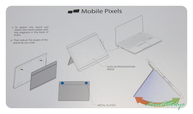 上図では裏側にモノを置いて立たせており、この状態でモニターとして使うには別売りのキックスタンドが必要になります。