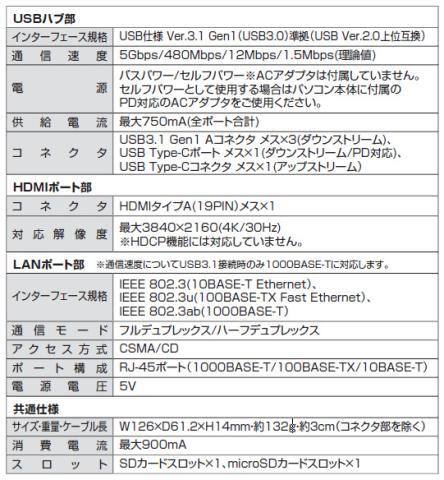 USB-3TCH14S USBハブ内蔵のUSB-LANについては、USB3.1接続時のみ1000BASE-T対応、との事でした。