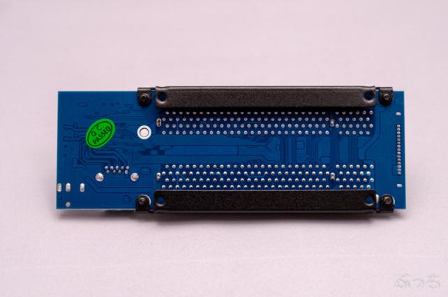 ライザー裏面は端子剥き出しだが、両サイドを黒い金属製の長いスペーサーに挟まれている為に平らに置く限りはショートしない。
