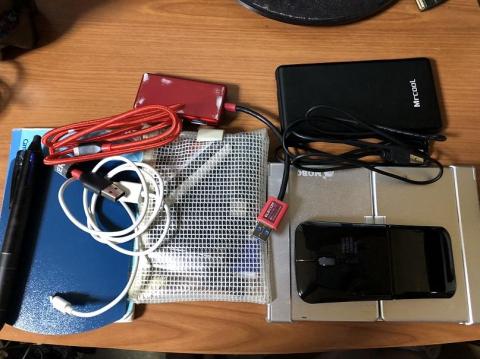 こちらのA6サイズのキャリングポーチに折り畳みキーボード、マウス等を入れていました。