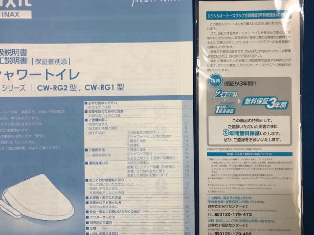 このINAXは 購入後 ハガキかウェブで使用者登録を済ませると2年の保証期間が3年に伸びます