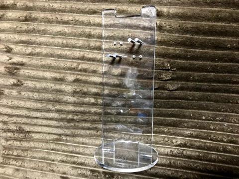 主に店頭でのディスプレイ用に使われる、アクリル製のイヤフォンスタンドです。本当はヘッドフォンスタンドが欲しいと思っていたのですが、残っていたヘッドフォンスタンドはTechnics EAH-T700の展示用スタンドだけであり、ヘッドフォンスタンドとしてはかなり設置面積が大きいこと、必ず背景にTechnicsのロゴが見えてしまう辺りに難を感じて購入は控えました。興味と置く場所のある方は税込100円ですので、買われても面白いと思いますが…。