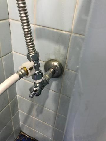 分岐水栓の上の器具は INAXのシャワートイレに付属していた部品