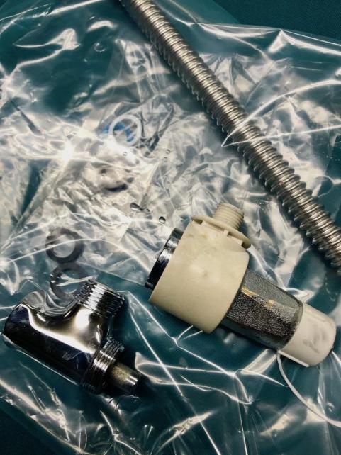 白いホースの下に見える マイナスドライバー対応の水栓部だけが新品です