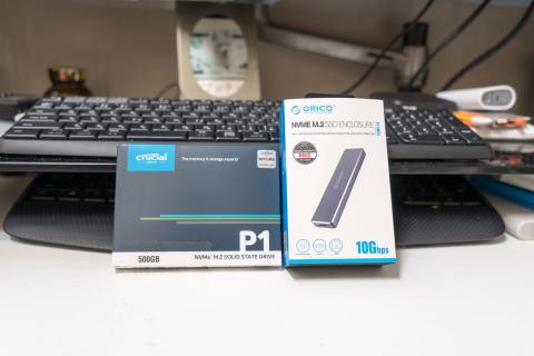Crucial NVMe M.2 SSD P1(500GB)とORICOのNVMe SSDケースです。