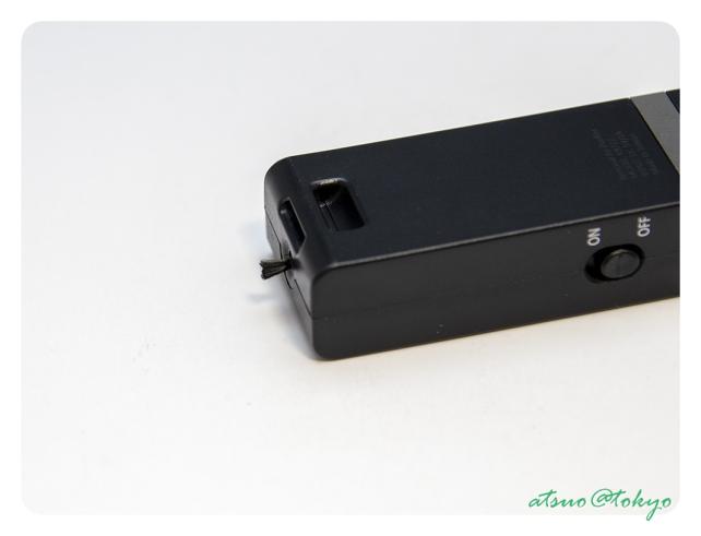 スイッチをONにすると白いライトが点滅し、耳を当ててやると”プシュップッシュップシュッ”と何か噴出している様な音が聞こえます。静かな場所でも耳を当てるくらい近づけないと聞こえない位の音の大きさです。