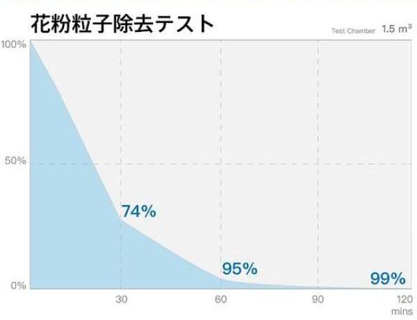 他にも花粉粒子除去テストの結果のグラフも提示されており