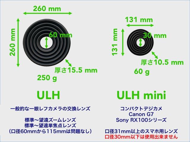 「レンズ先端にピントリングがあるレンズには、フードにULHを装着させた方が窓などに接着させた後でも、フォーカシングが容易です。」