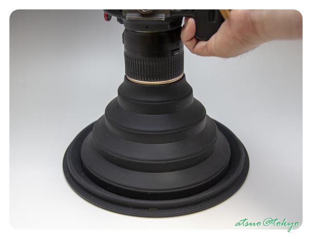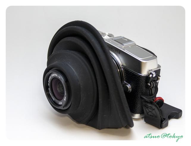 また柔らかくて扱いやすい上に防水なのでレンズに装着したままカメラを覆ってやる事で滝などでの撮影でカメラに飛沫がかぶらないように出来るとか、凸凹した場所等でのカメラ置き場としても使えるみたいな事が書かれていました。